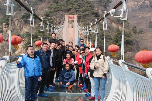 早晨八點,迎著初晨的朝陽,伴著和煦的春風,六輛滿載著公司員工的汽車從公司出發,九點四十到達目的地---萊蕪九龍大峽谷旅游風景區。一路上公路兩旁高低起伏的山巒和田園風光另大家心情愉悅,山上一簇簇的桃花、杏花和剛剛發芽的枝條,更使大家感受到春天的美好。